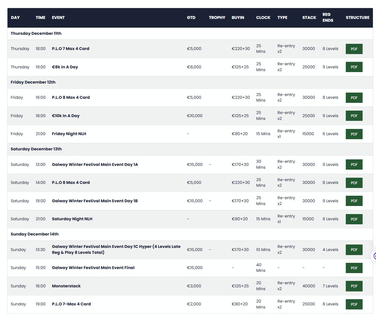 Main Event Buy-In: €170+€30