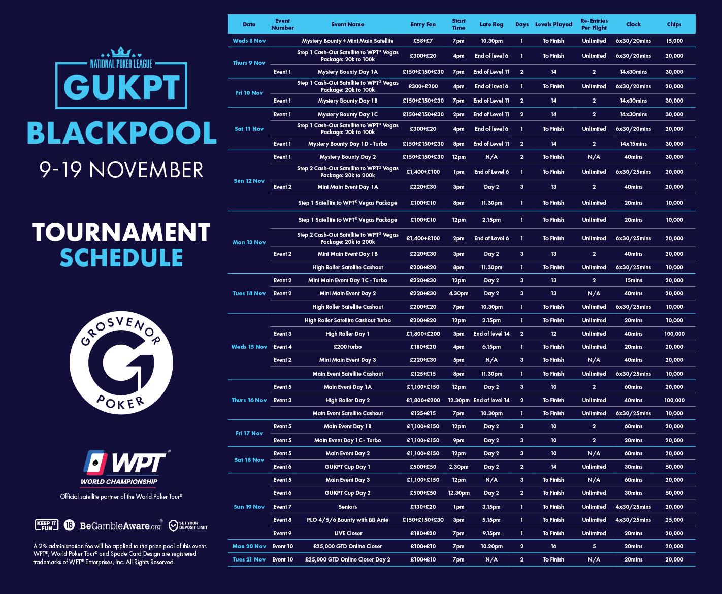GUKPT Blackpool features a £1100 + £150 Main Event