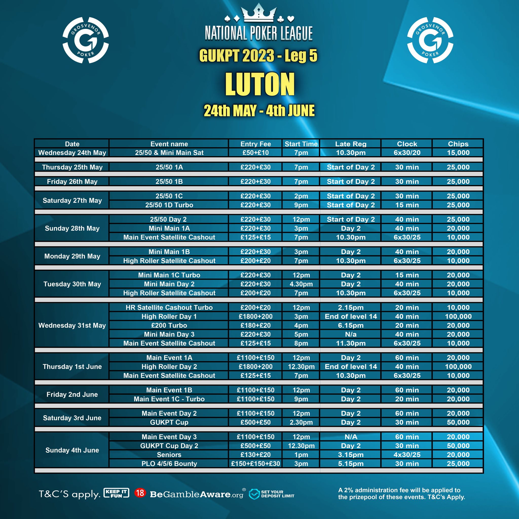 GUKPT Luton features a £1100 + £150 Main Event