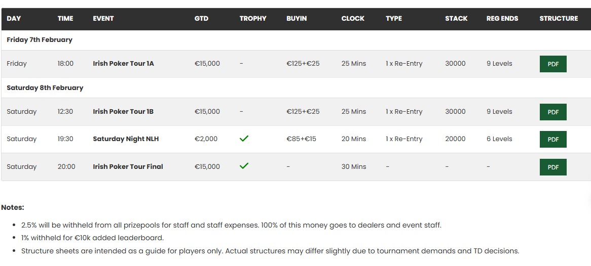 Main Event Buy-In - €125+€25 with festival guarantee of €17,000