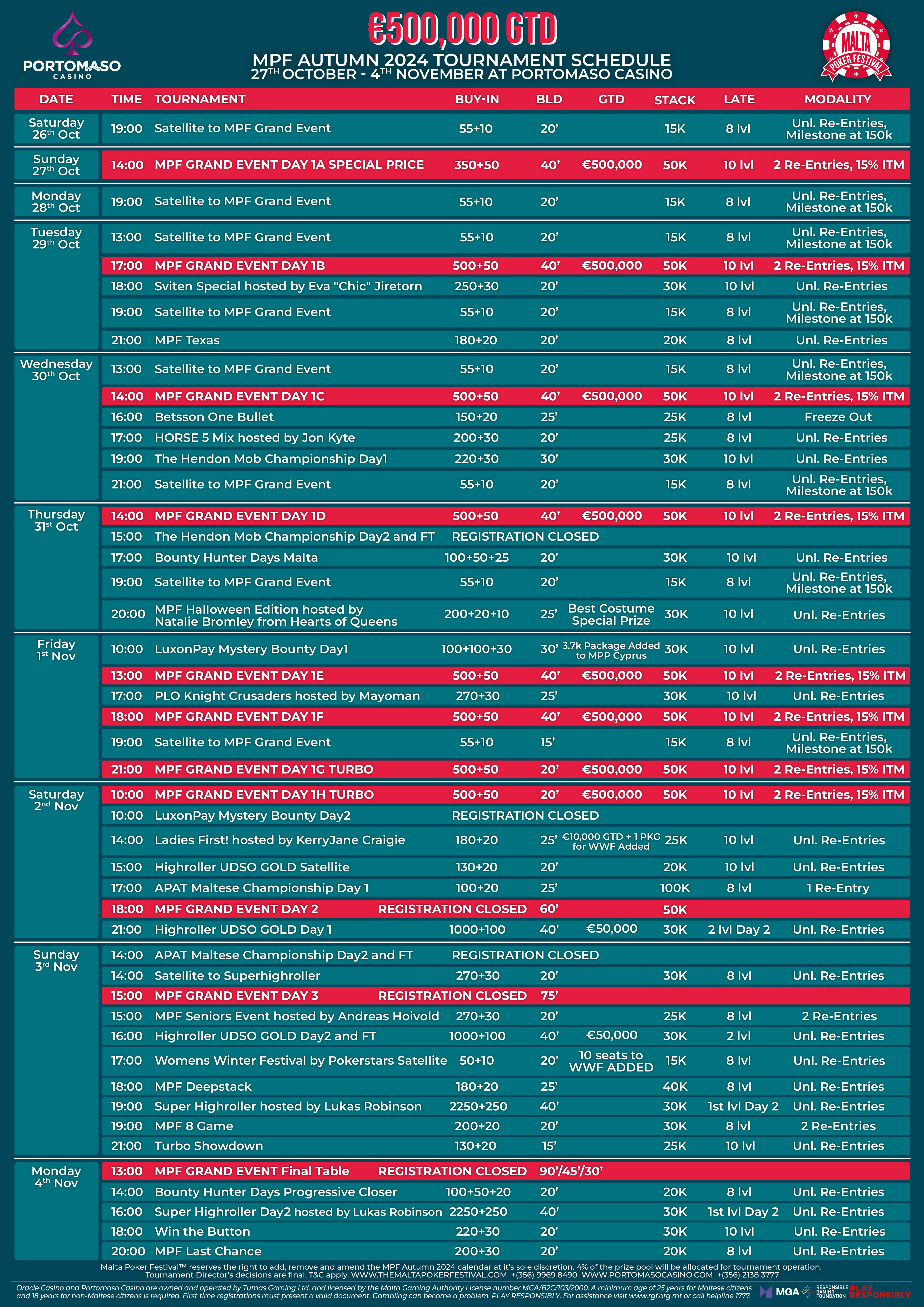 MPF Grand Event Day 1A Special Price The Casino at Portomaso + Offline Registration Only