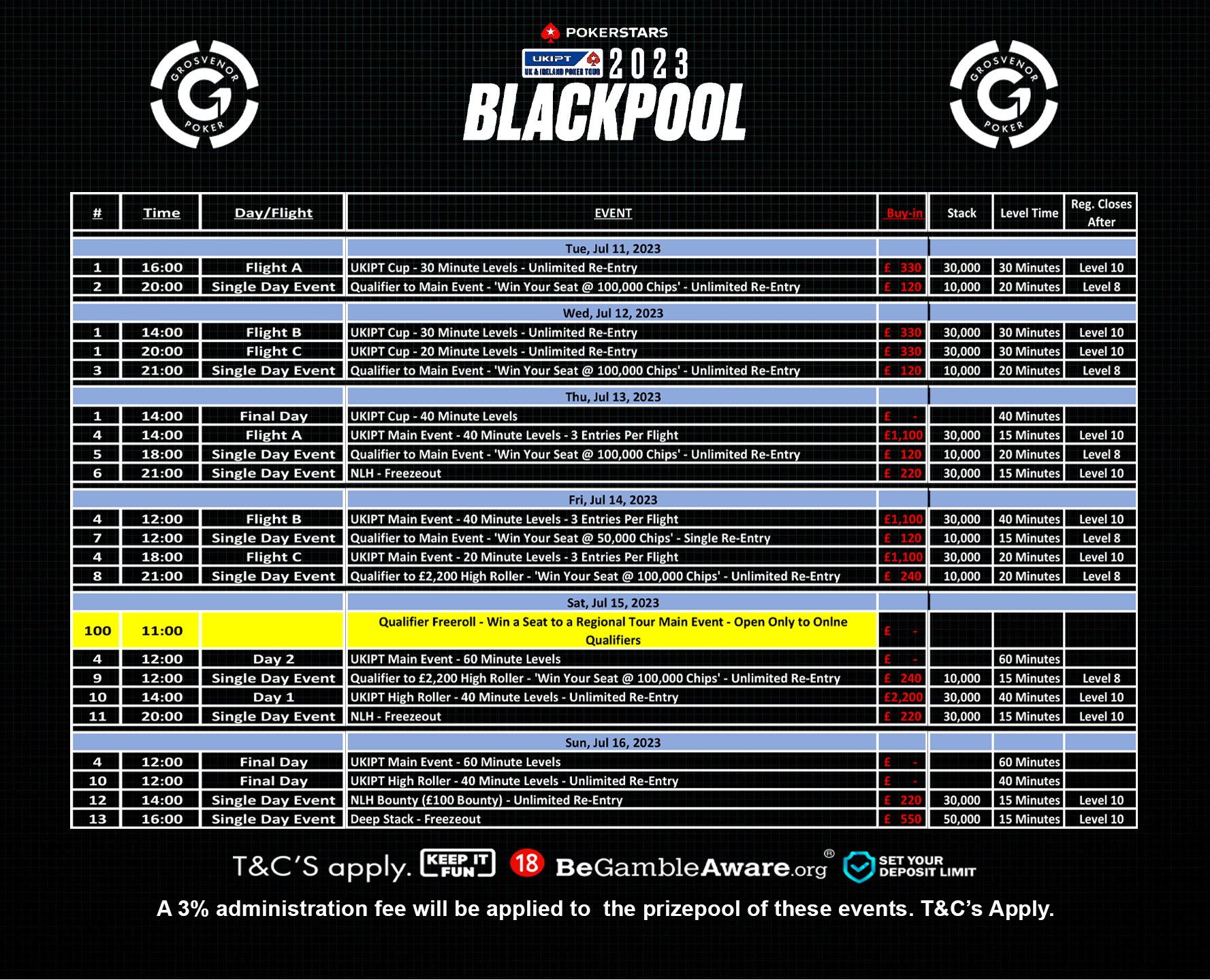 The UKIPT welcomes you to Blackpool, the perfect quintessentially British seaside resort. Grosvenor Casino Blackpool is located right next to the famous Pleasure Beach amongst all the seaside hustle and bustle.