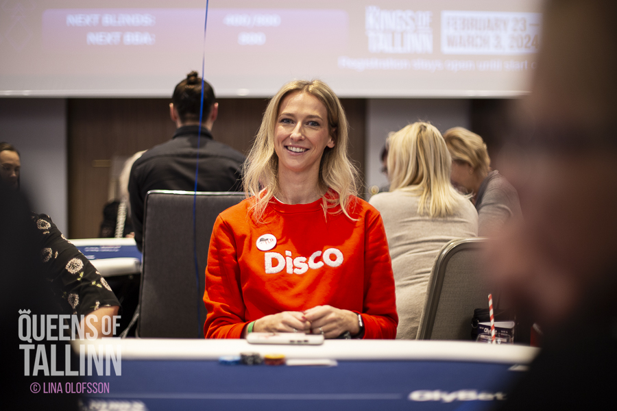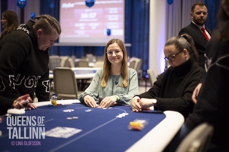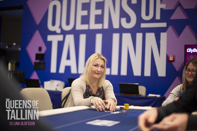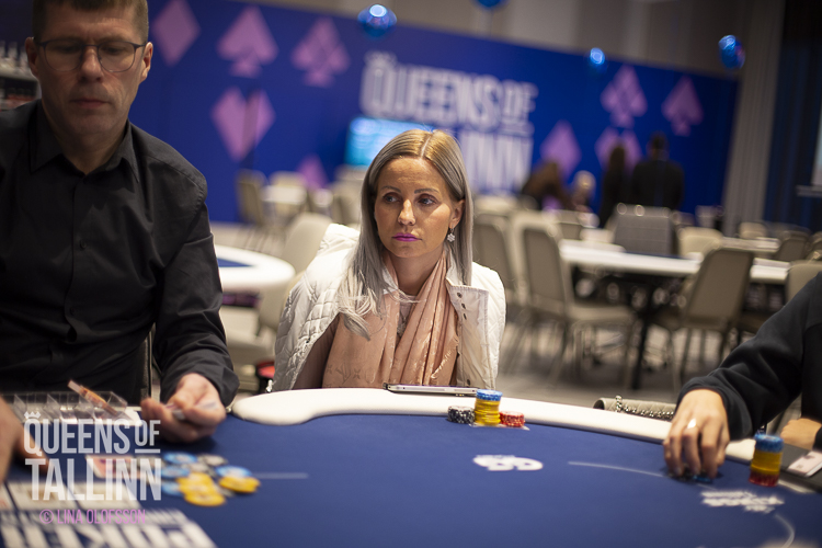 The second flight here at Hilton Park today in the Queens of Tallinn had 31 entries and after their eight levels, 19 players remain Indre Martoviciute was the queen who walked away with the most chips bagging 100,800. This puts her second in chips after the first two flights but we'll see what happens after tomorrow's turbo flight if anyone can catch up with her and our overall chip leader from day 1A Hanna Heinlo with 101,100.