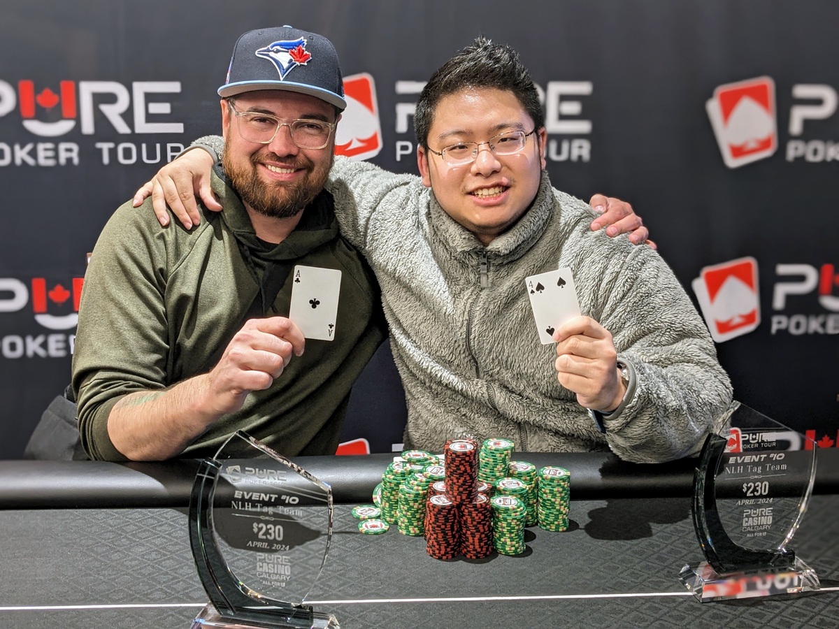 The numbers are in for the Tag Team event and the field topped out at 40 entries tonight. There are 21 teams still in action competing for $7,600 to be divided four ways. The winners tonight will share $3,270 and the rest of the prizes will be under the Payouts tab shortly.