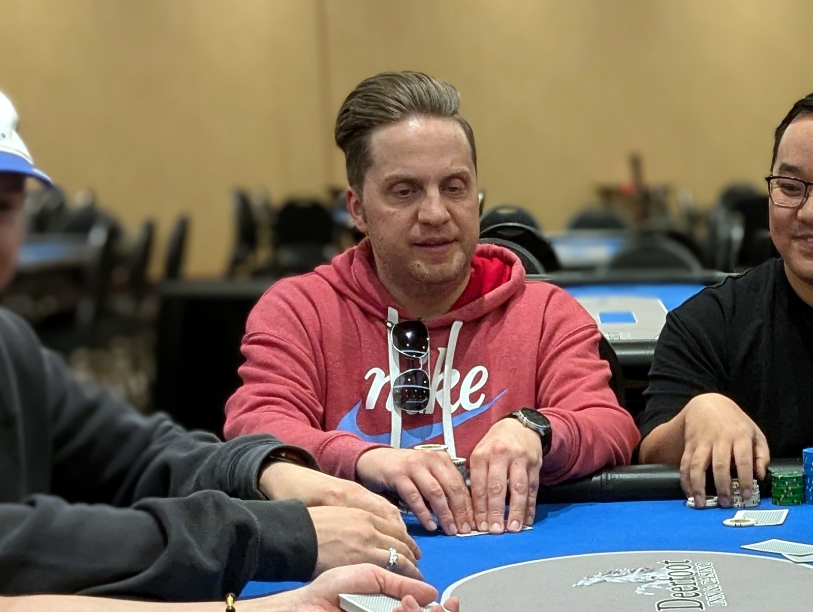 Derek van Loon was the player to bring the field down to 7 remaining. I missed the action while I was doing pictures and stacks.