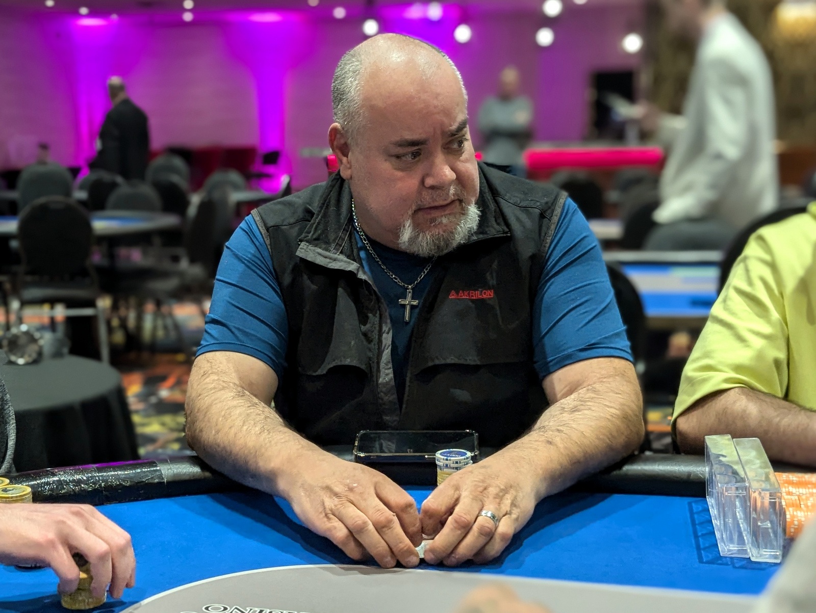 There's some mystery in the air on Saturday with the side game. The Mystery Bounty players will sit down with 25k in chips for 20-minute levels throughout the day. Players can buy in for the first ten levels of poker which should put the final chance to enter at about 8:50 pm.