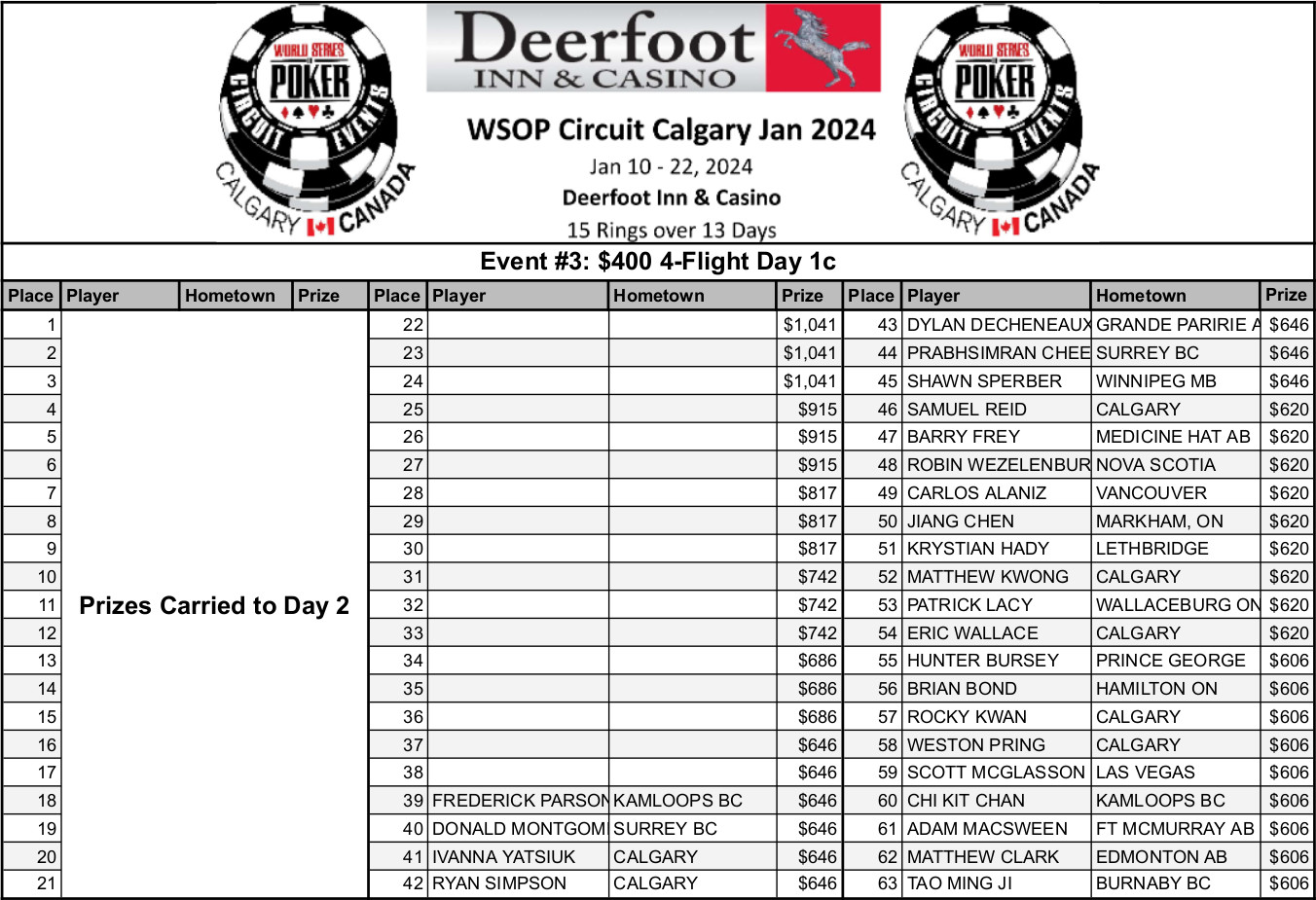 The 4-Flight is always a huge event here at WSOP-C Calgary and this year is no different. Day 1a beat last year's field by more than 10% and the Day 1b field is already almost 30 entries bigger than last year's 1b (333).