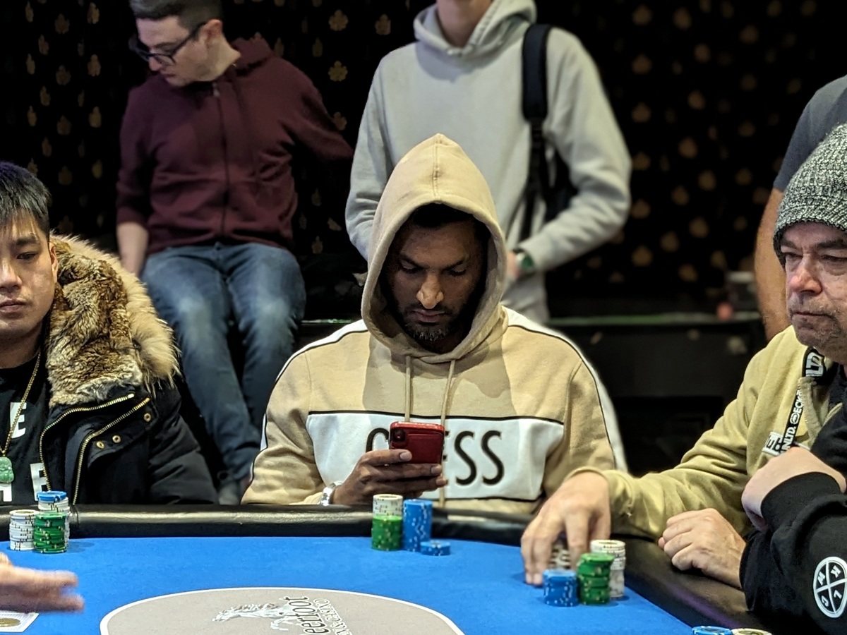 They are two off the ten-handed final table now with 12 players left. Chris Murphy and Teo Sanchez completed the $5,135 payout level, and the next three players out will pocket $6,246.
