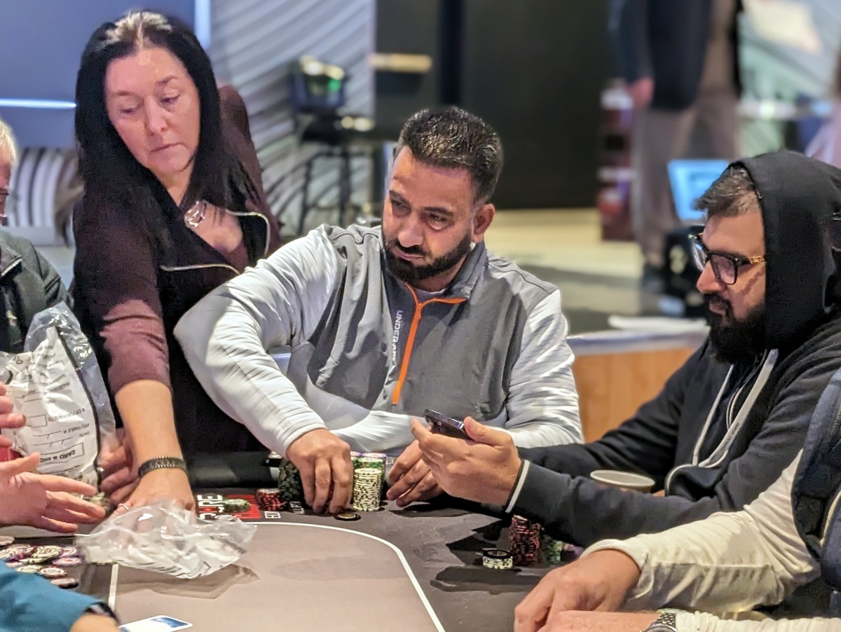 There are now two players with more than 400k at the first break of the day. With Level 16 just beginning, Garry Sandhu is still leading, but Eric Wasylenko is now over 400k as well while Colten Yamagishi and Ron Lauzon are both in the 300k range.